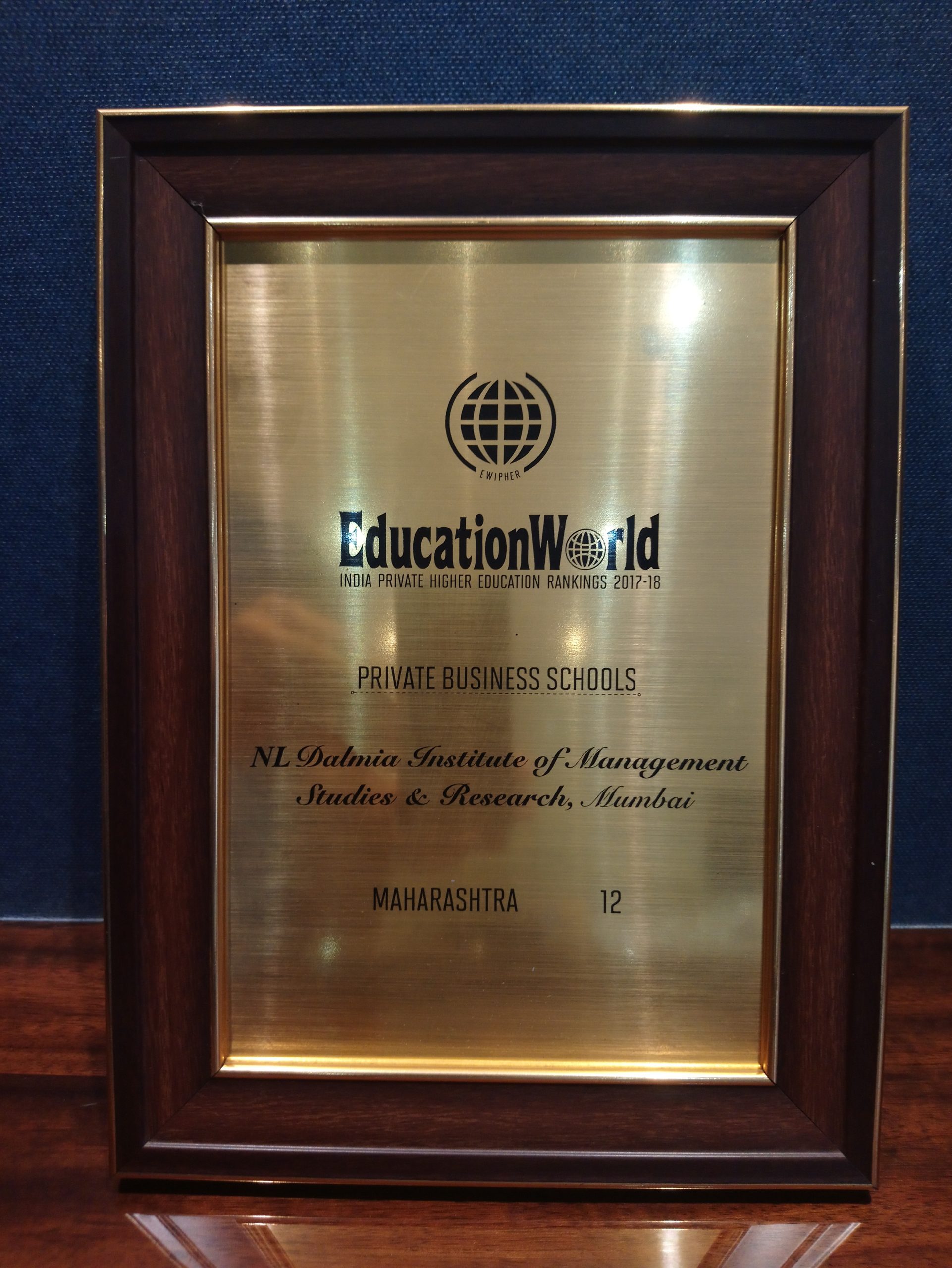 Description: Our Institute was ranked no. 12 amongst Private Business Schools in Maharashtra by the Education World – India’s Leading journal in Education in June 2017