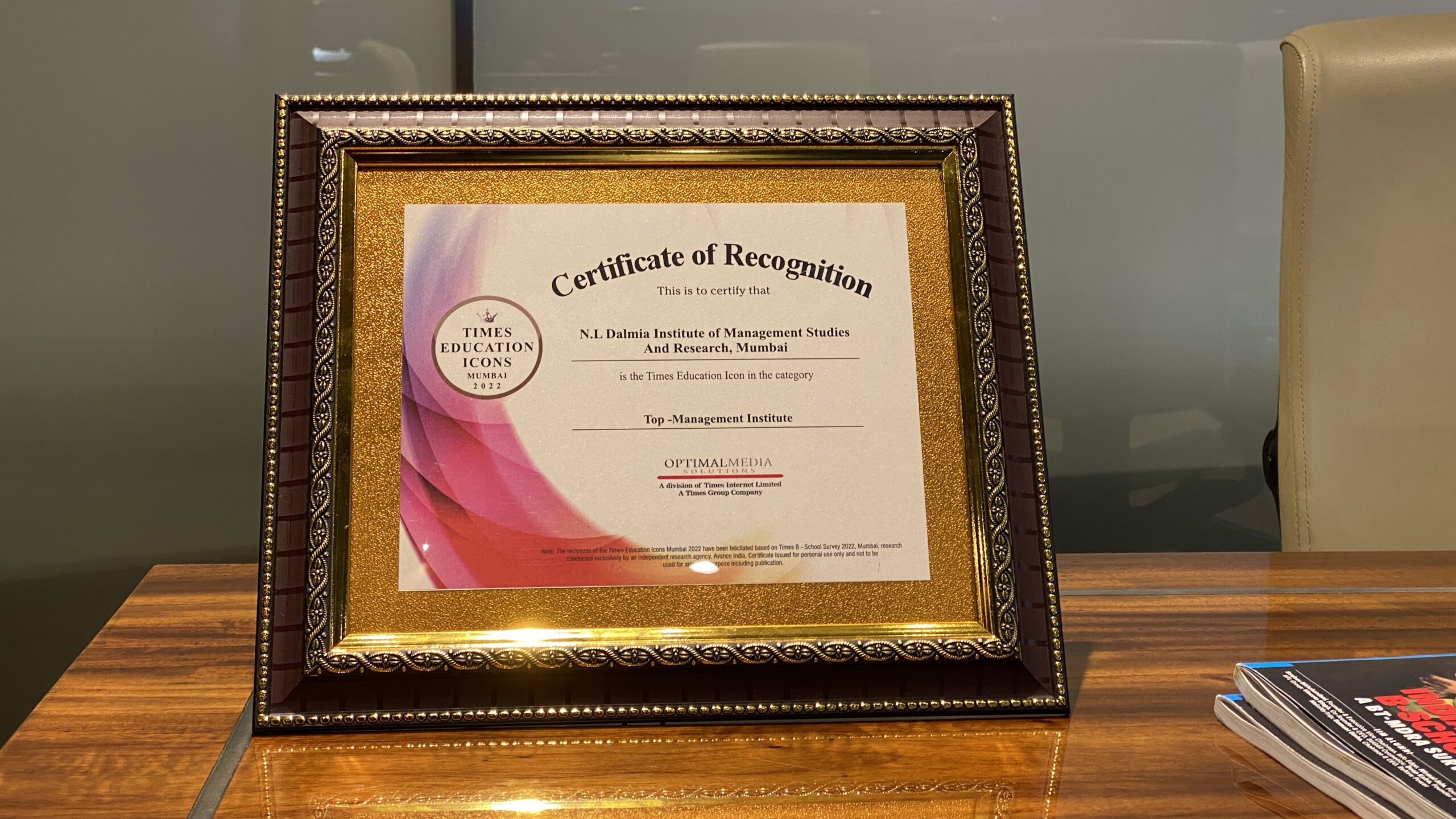 N. L. Dalmia Institute of Management Studies & Research received the “Top Management Institute” Certificate from Times Education Icons Mumbai 2022.