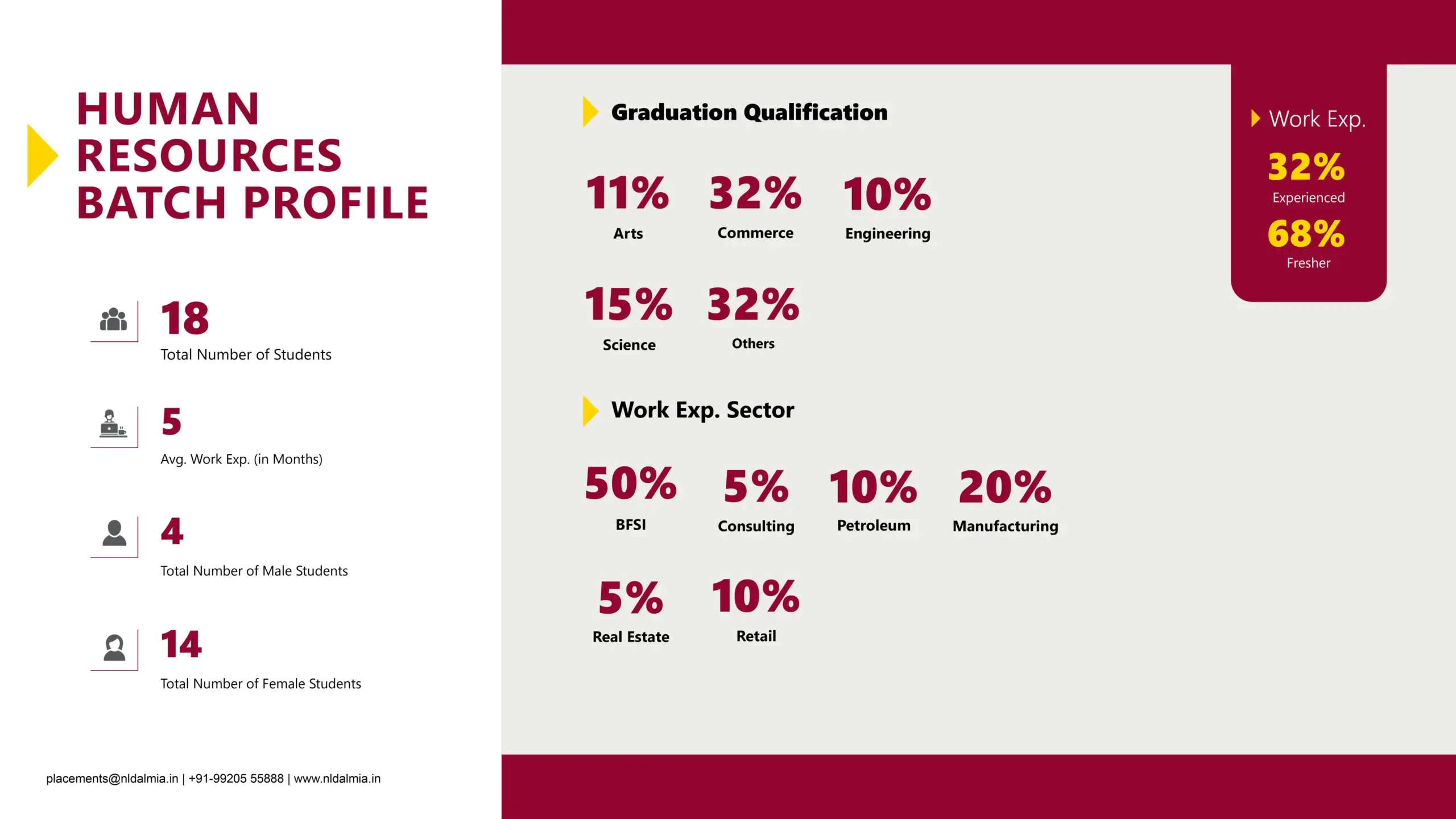 N. L. Dalmia has shaped my personality in many ways. I learnt the best of HR subjects from amazing faculty members and the overall ecosystem helped me in becoming a better person.