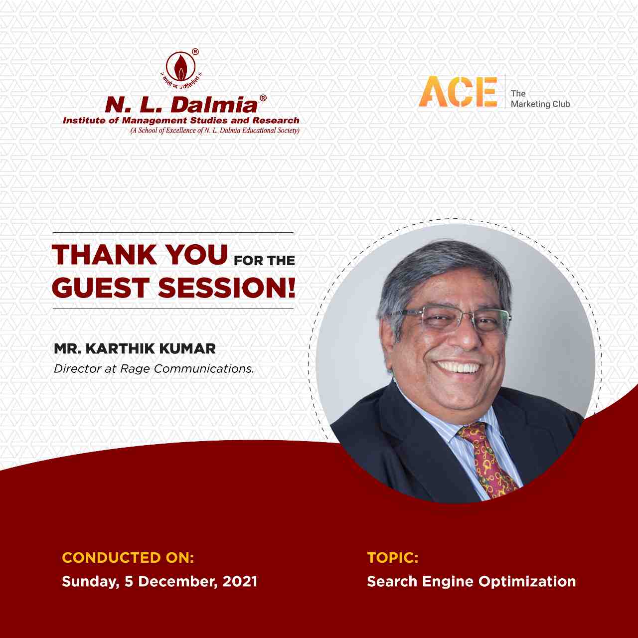Ace club extends a warm thanks to Mr. Karthik Kumar for the wonderful and insightful session on Search Engine Optimization. Our students gained a lot of knowledge from your expertise.