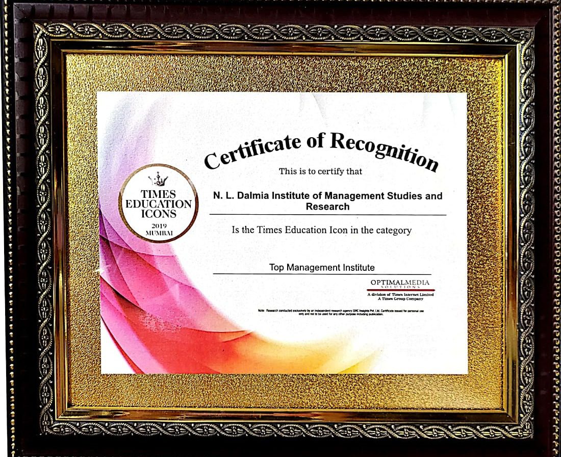 Awarded By: Education World On: June 22, 2019 Description: N. L. Dalmia Institute of Management Studies and Research was awarded 11th place in Maharashtra by Education World under the category India Private Higher Education Ranking 2019-20